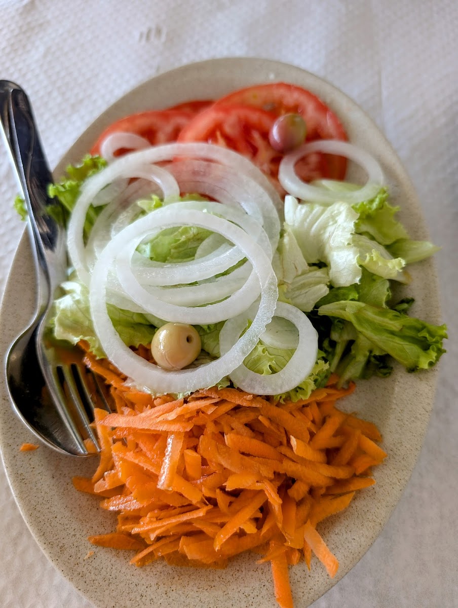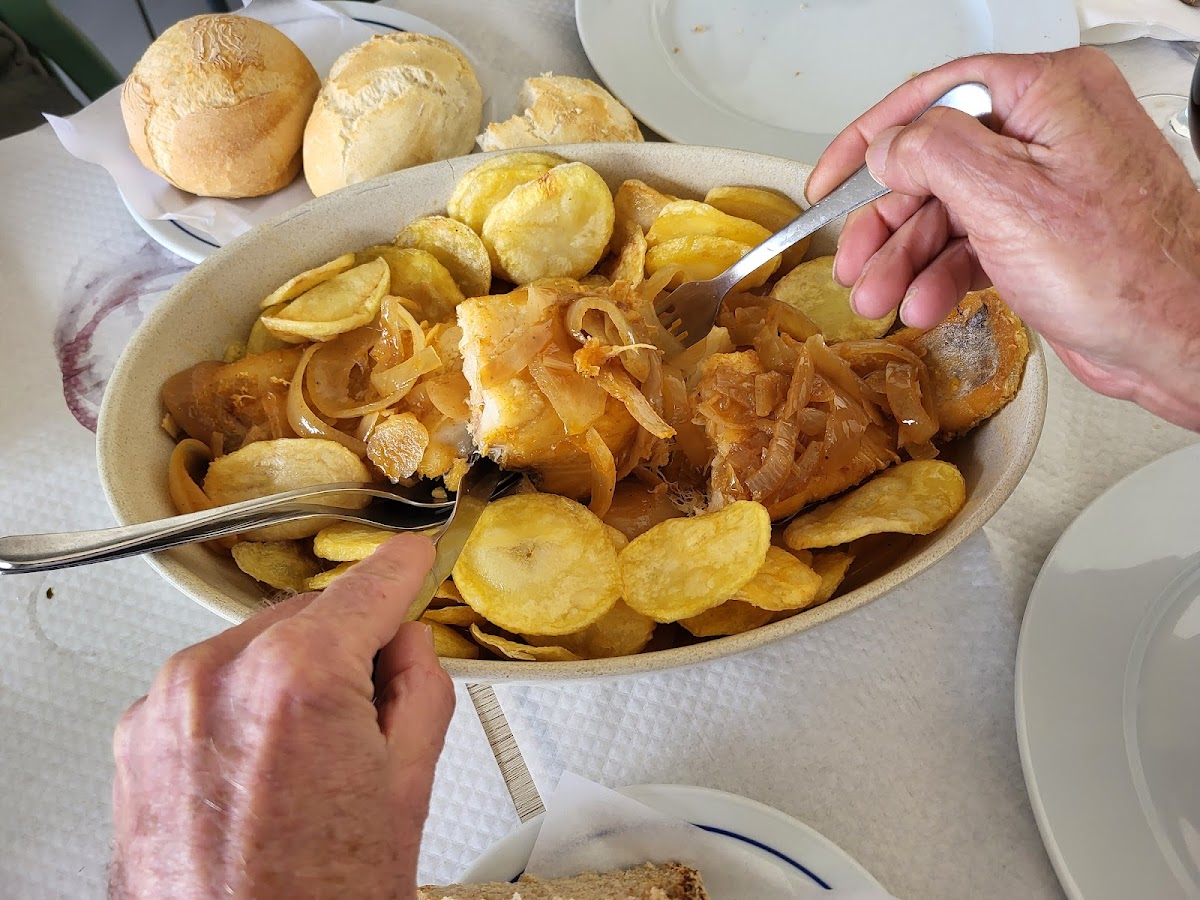 The menu doesn't stop there, though. The Salad served alongside these main dishes is fresh and crisp, offering the ideal balance to the rich flavors of the Portuguese classics. And for dessert, you can’t miss the Tarta de la Abuela, a traditional Portuguese dessert that's rich, sweet, and a perfect way to end your meal on a high note.